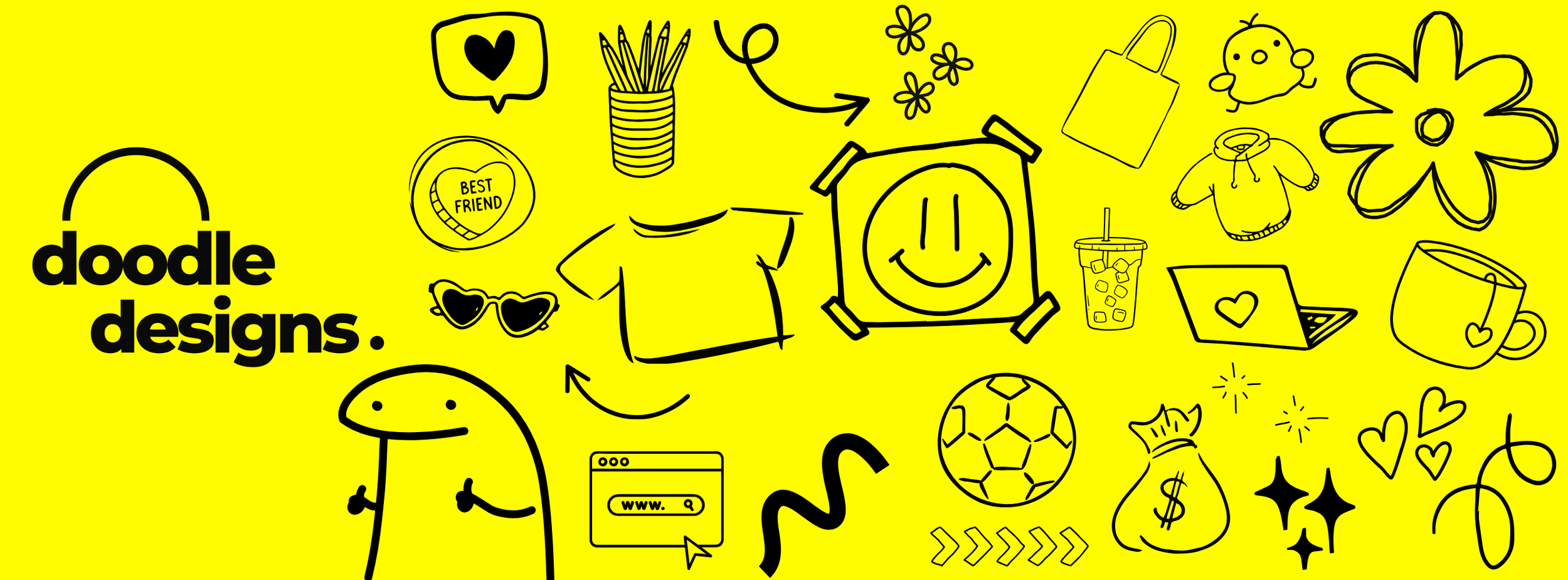 Doodle Designs is a playful branding project focused on creating a fun, sketch style visual identity. I designed the logo, colour palette and hand drawn doodle illustrations that reflect creative and approachable brand personality.
